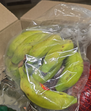I love Thai bananas; they arrive green, and you have to leave them for a couple of days to be ready to eat.
