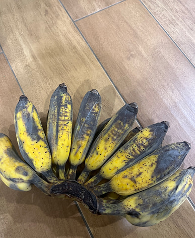 bananas are bruised with brown spots