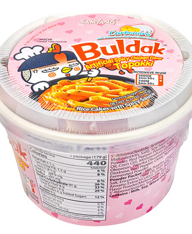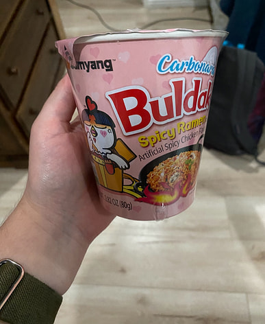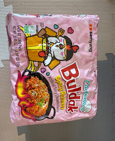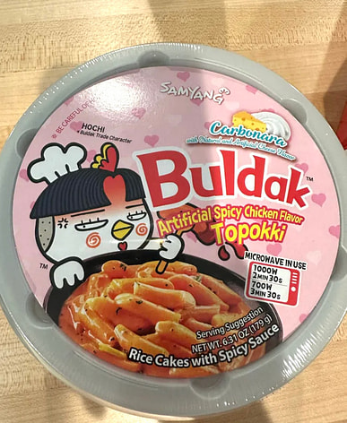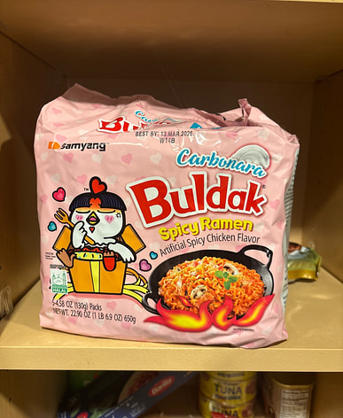 Buldak is so spicy, but Carbonara is just the right amount of spicy, making it my favorite ramen! Buldak goes fantastically well with fried foods like takoyaki and chicken!