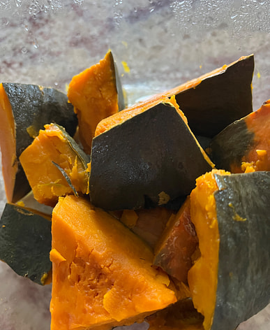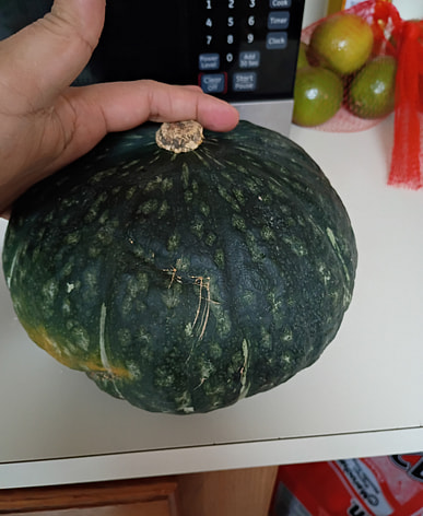 The pumpkin this time was a bit too old; after cooking, the skin was like a shell, inedible, and I had to spit it out.