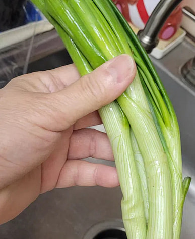 Kimchi and onions go well together.