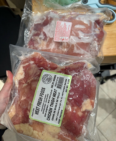 Skinless and boneless chicken thigh meat, looks pretty good. I'm planning to use it as baby food for my puppies, or I can make dehydrated chicken jerky. It's very cost-effective.