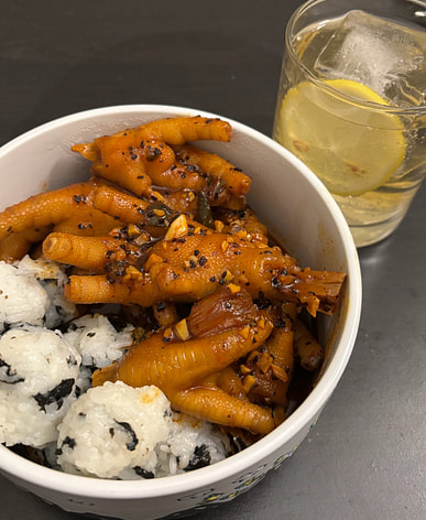 Spicy chicken feet adobong tuyo One of my favorite snacks while watching tv. Will order again for sure.