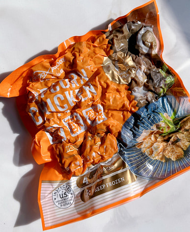 Delicious pan-fried dumplings, no oil needed when cooking, as the dumplings themselves contain oil. You must order when they're on sale!