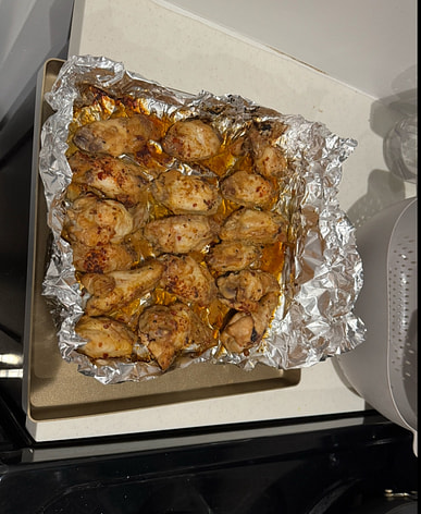 Rinse and pat dry the wings, then trim any excess fat or loose skin. Season or marinate as desired before cooking.