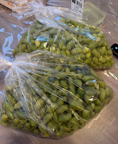 It's the first time to eat fresh chickpeas. It tastes good.