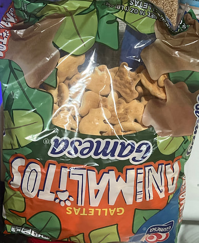 Cookies that my son loves and the bag with the cookies is a very good size. I store them like this so they last longer.