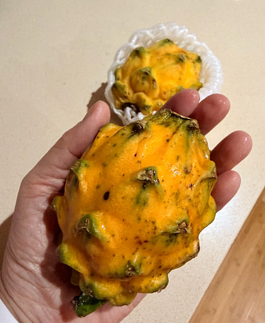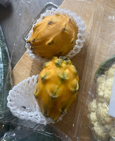 Two dragon fruit, hopefully they'll be sweet.