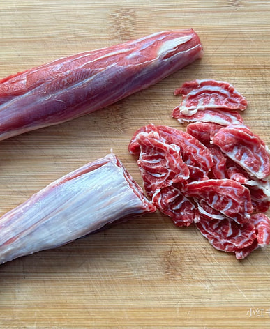 A big piece of meat shrinks after being braised, then, with the spices, it's delicious!