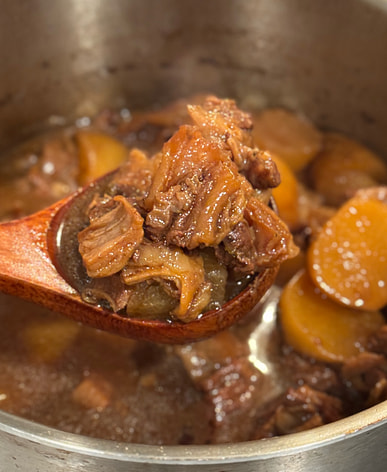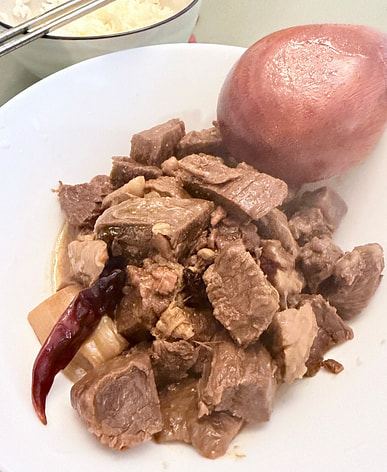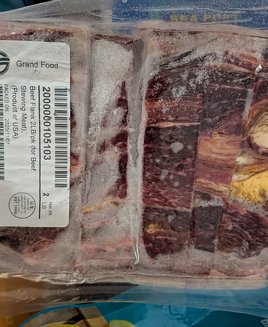 I bought this braised beef brisket with radish and pork belly. It was already pre-cut, which was convenient, but there was a lot of tendon and membrane. After removing the tendons and membranes, there would probably only be a little over a pound of beef brisket left.