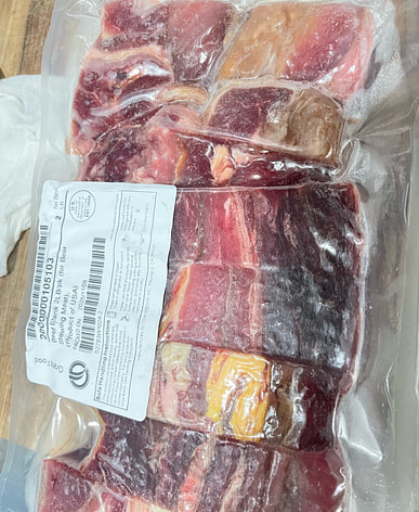 The meat is delicious, cut into pieces and left whole to cook beef stew perfectly. Very convenient.