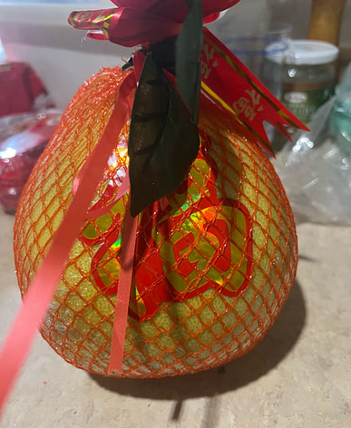 The pomelo is very fresh, and the "福" (good fortune) character on it looks beautiful.