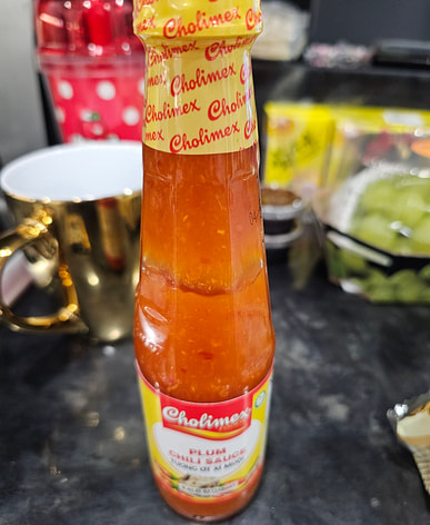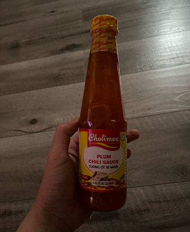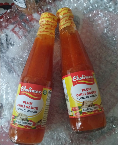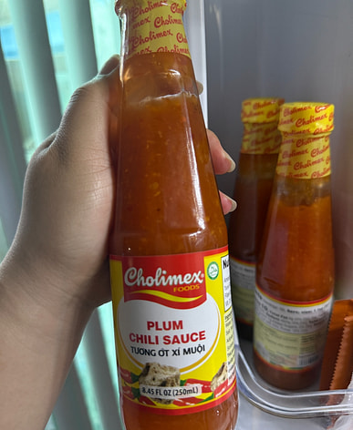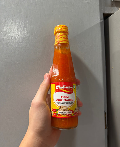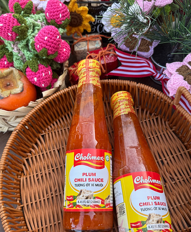 This delicious chili sauce with pickled plums is perfect for dipping with spring rolls.