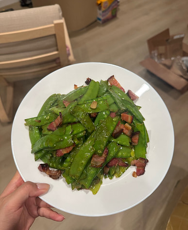 Stir-fried snow peas with cured pork, not bad. The snow peas were still very fresh even after being in the refrigerator for a few days.