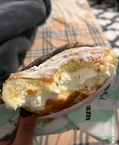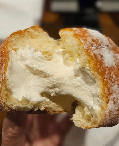 Smashed upon arrival so I had to try it first. Absolutely delicious. The cream is so rich and airy. The donut is not like an American donut, dense but not cake, just try one if your a creampuff kind of person. It is a treat!