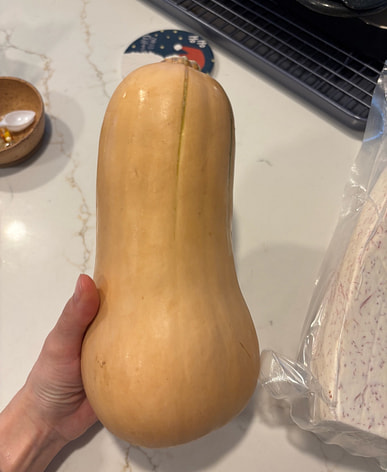This pumpkin is sweet and delicious, buy it to cook for the baby.