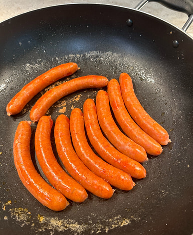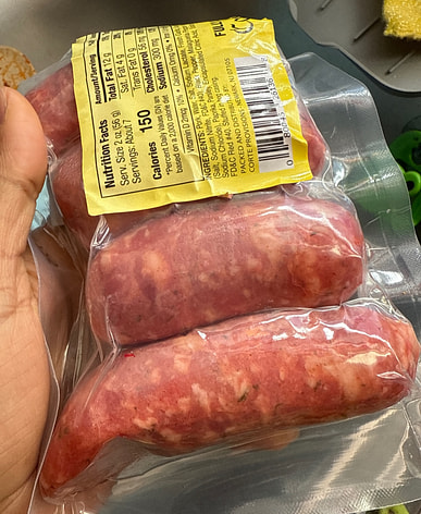 Whenever I go shopping, the first thing I grab is the sausage.