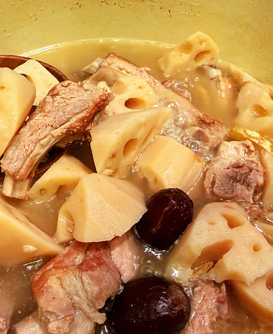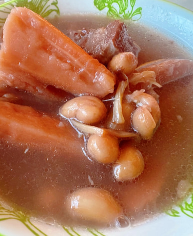Pork Rib, Peanut, Scallop, and Lotus Root Soup Very smooth and powdery, worth buying. Sprinkle some white pepper before leaving the country. Everyone drank a big bowl.