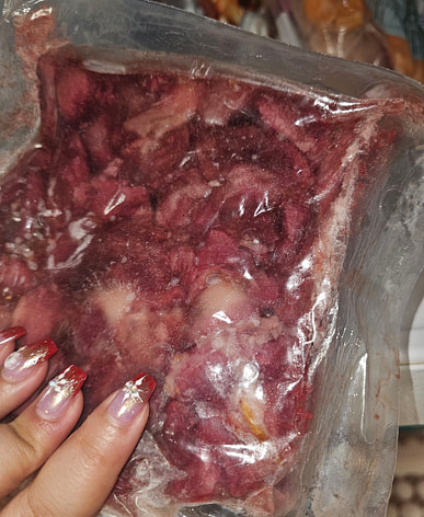 Delivered frozen..gizzard,i use it to cook bopis.
