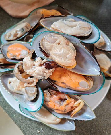 The New Zealand half-shell mussels were so fresh! Just a quick boil, a quick rinse, and then dipped in Japanese wasabi soy sauce – so delicious!