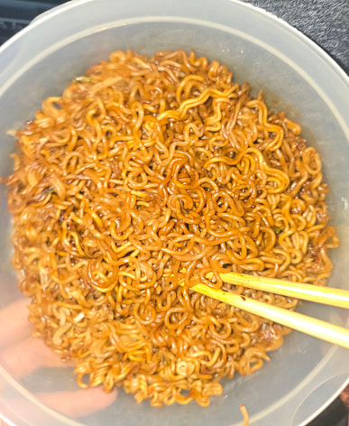This ramen is not spicy and is delicious, so it's great for kids to eat!