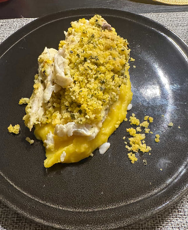 Yummm used the passion for fish with passion fruit farofa with. Mas gusto Mandioquinha puree, so good !!!!! Felt like home.