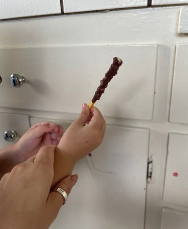 good snack. tastes like a crunch bar on a little stick.