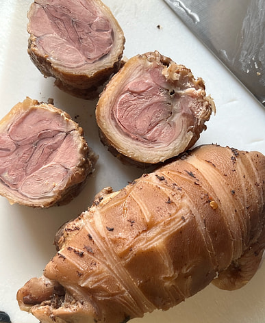It’s recommended to leave some of the fat cap on for moisture and flavor, but you may trim excess fat as desired.