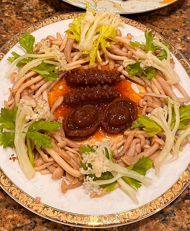I made pork skin jelly with sea cucumber and abalone using pork skin