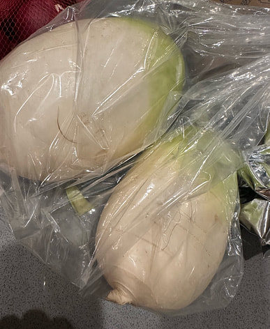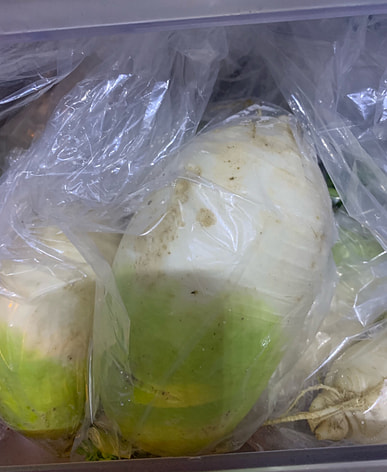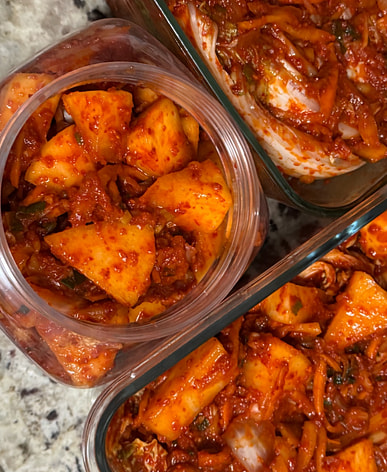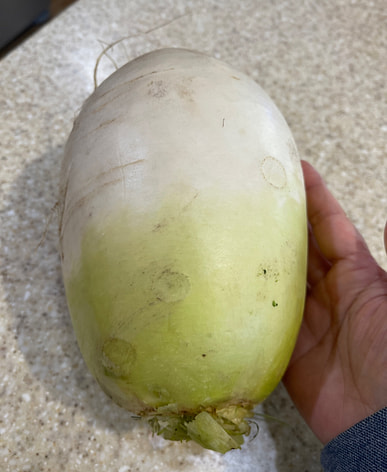 While I'm pickling a head of cabbage, I'm also pickling some radish kimchi.