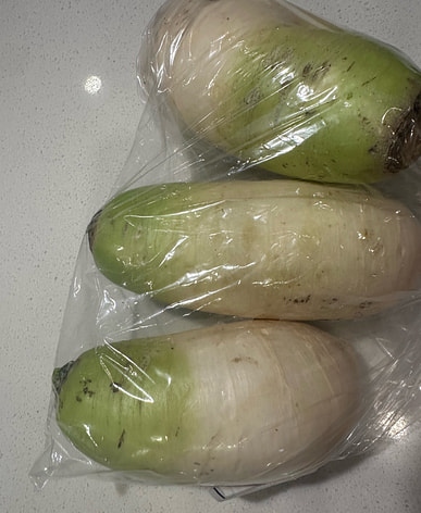 This radish is kind of cute, a little bit pink. I wonder if it tastes good.