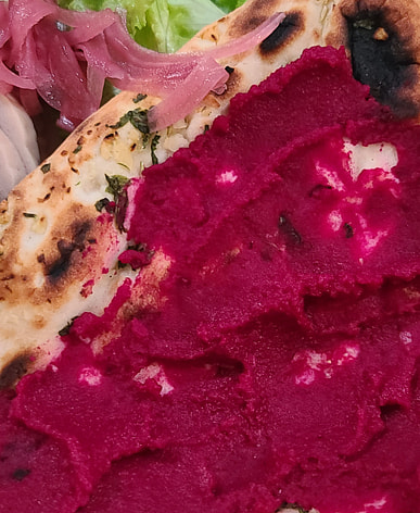 Purple onions marinated with fish sauce and vinegar are great with pork patties.
