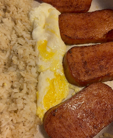 My breakfast Spam so good and delicious with fried rice and eggs