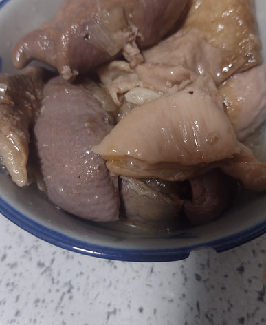 A whole, large, and very clean pig's stomach—I immediately made a peppered pig's stomach and chicken soup with ingredients I had at home. This is just one of the items on my must-buy list.