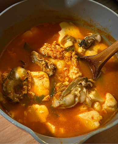 It wasn't that spicy, so I added a little more red pepper powder and boiled it with oysters to make seafood sundubu. It was perfect. It was so delicious~