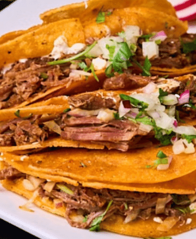 I've ordered these multiple times. They're delicious. I melt lots of cheese onto and into the double-layered tortillas, and chop up fresh tomatoes to add to the onion/herb bits provided. You can dip the tacos in the gravy; or, as I frequently do, I pour it over the top during the last few minutes of baking. The portion is also very large; plenty for two meals.