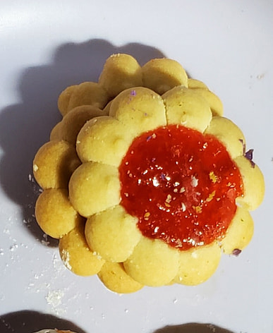 The cookie was a bit dry but the strawberry jam smelled and tasted good.