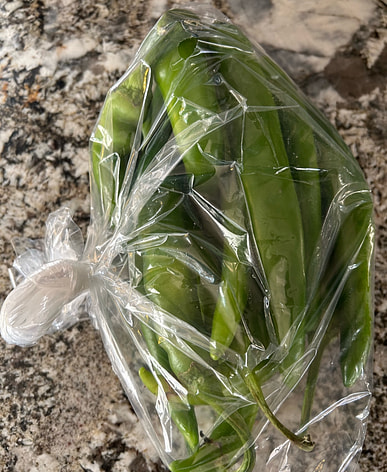 Una bolsa grande de pimientos verdes, una porción bastante generosa.