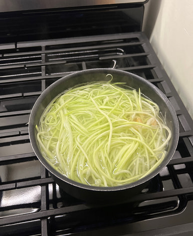Es conveniente dividirlo en tres tiras. Hay que blanquearlo antes de hacer la sopa.