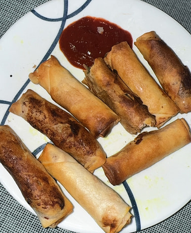 ¡Rollitos de primavera riquísimos y crujientes! Ojalá vinieran con una salsa para untar que los hiciera perfectos.