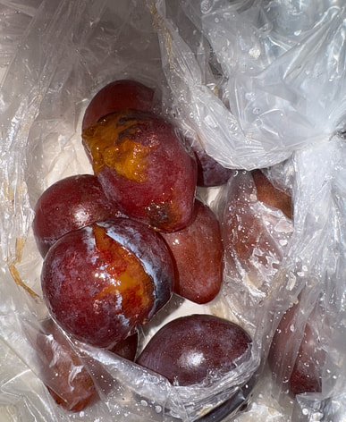 Pequeñas, pero llenas de sabor. Las ciruelas estaban frescas, casi firmes; algunas estaban casi maduras, pero aún bastante firmes. Comí algunas; son dulces con un toque ácido al final.