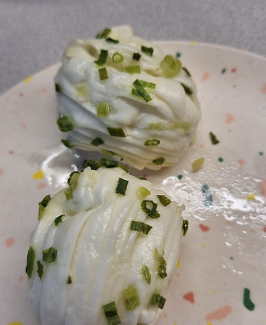 Quedó bueno y suave después de cocinarlo al vapor... aunque podría tener más cebollino, pero en general estuvo bien.