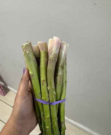 Los espárragos eran bastante gruesos, pero estaban deliciosos después de pelar la dura piel exterior de la base.