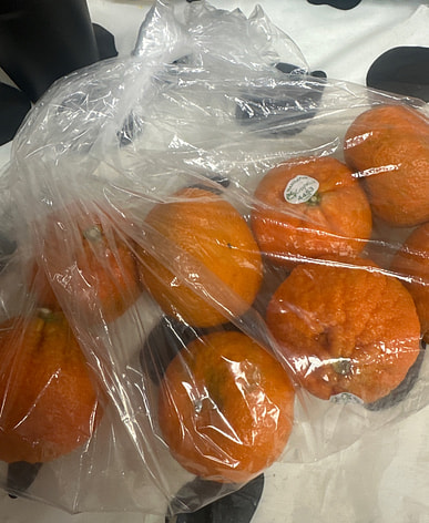 Una bolsa de mandarinas. En perfecto estado. Contenta.