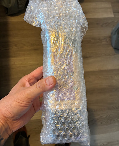 Me encanta el empaque de este frasco de vidrio. Envuelto en plástico de burbujas.