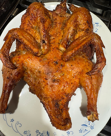 A mi familia le encanta especialmente el pollo al horno con sal hecho con esta gallinita vieja.