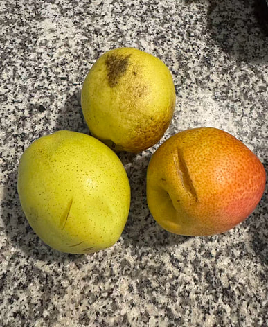 Las peras cada vez son más grandes, esta vez eran ocho y tres de ellas quedaron aplastadas...