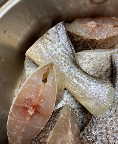 El pescado es firme y se marina con sal y luego se fríe en la sartén hasta que está fragante.