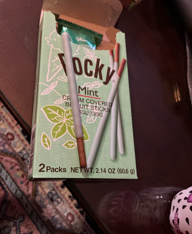 El pocky de chocolate está delicioso, gracias.