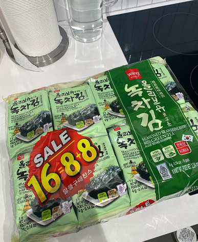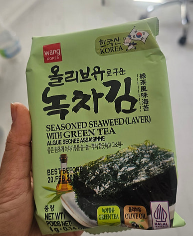 ¡Me encanta el sabor intenso de estas algas! Las algas asadas con aceite de oliva quedan un poco más crujientes. No noto mucho el sabor del té verde, pero seguro que me sienta bien, jaja.